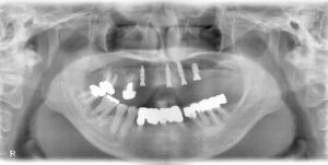 前歯が6本ぐらぐらして、総入れ歯になるのが嫌なのでなんとかしてほしいということで来院されました。