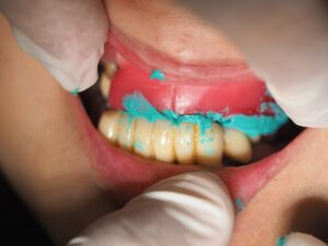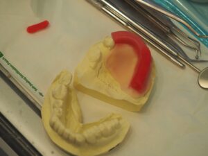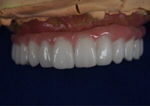 増歯義歯仮歯のセット。インプラントのシミュレーションも行い、これでインプラントの準備をしていきます。