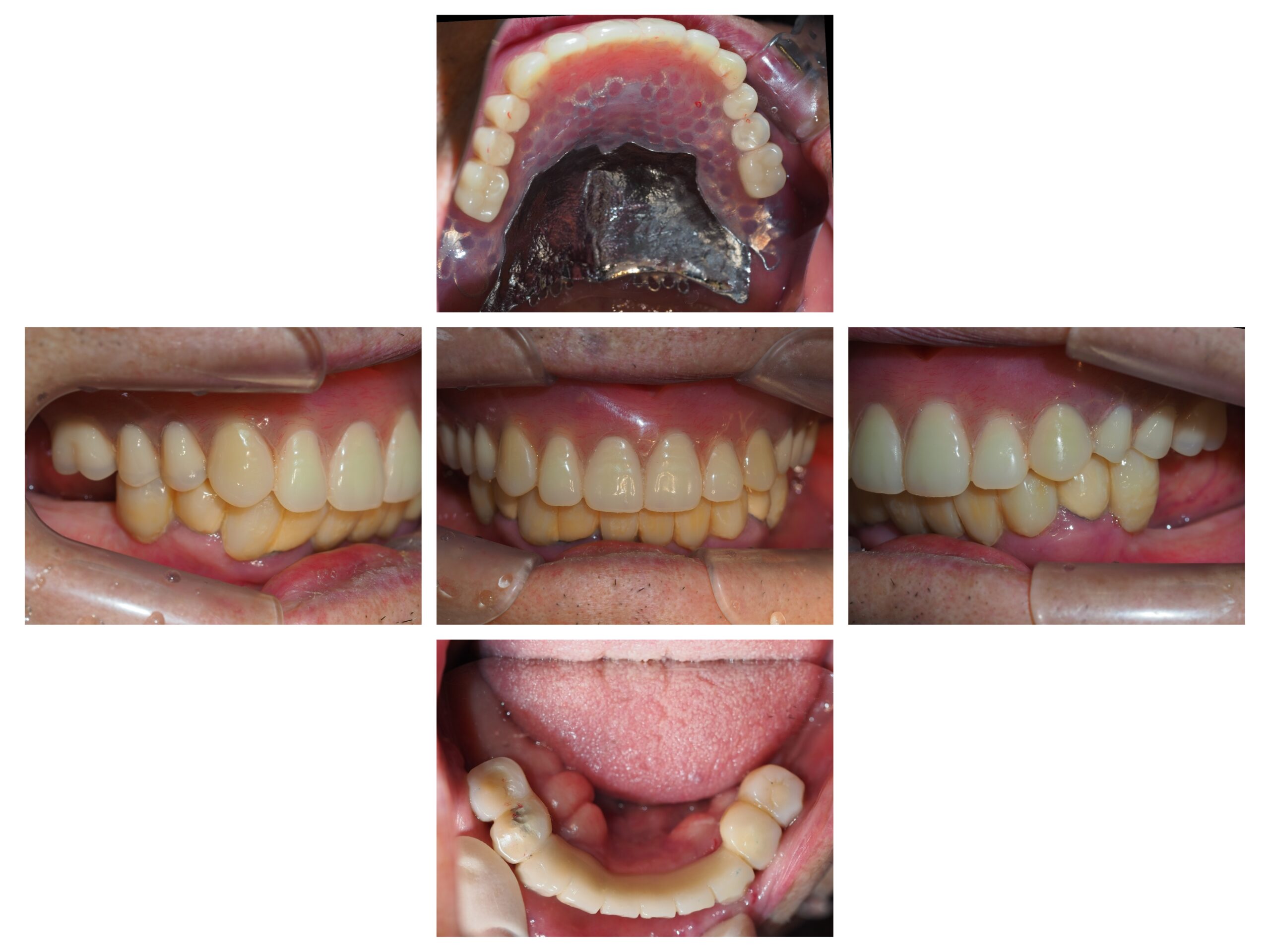 下顎のブリッジが1番後ろが5番までなので、画像の通り上顎の金属床は6番止まりで吸着、適合全く問題なく装着出来ました。